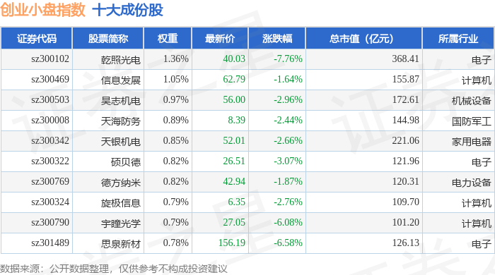 创业小盘(399020)指数十大成份股详情如下: