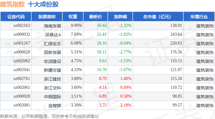 资金流向方面,建筑指数(399235)成份股当日主力资金净流出合计1.91亿元,游资资金净流入合计2336.97万元,散户资金净流入合计1.68亿元。成份股资金流向详情见下表: