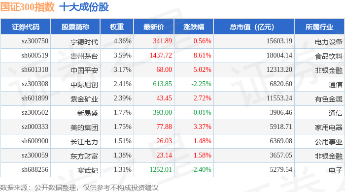 资金流向方面,国证300(399312)指数成份股当日主力资金净流出合计317.88亿元,游资资金净流入合计58.69亿元,散户资金净流入合计259.35亿元。成份股资金流向详情见下表: