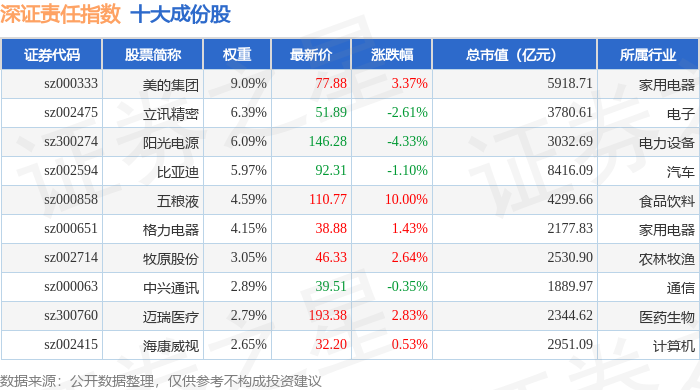 证券之星消息,1月29日,深证责任(399341)指数报收于1687.97点,涨0.65%,成交1587.39亿元,换手率2.45%。当日该指数成份股中,上涨的有51家,特发服务以10.13%的涨幅领涨,下跌的有49家,大族激光以7.16%的跌幅领跌。