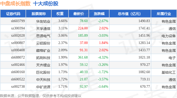 证券之星消息,1月29日,中盘成长(399374)指数报收于5238.46点,跌1.02%,成交1781.88亿元,换手率2.55%。当日该指数成份股中,上涨的有45家,迎驾贡酒以10.01%的涨幅领涨,下跌的有54家,厦门钨业以7.59%的跌幅领跌。