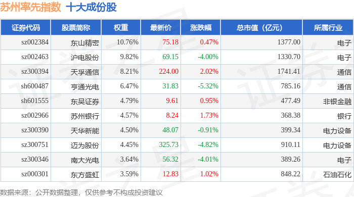 苏州率先(399410)指数十大成份股详情如下: