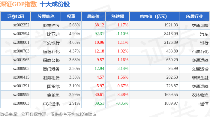 深证GDP(399648)指数十大成份股详情如下: