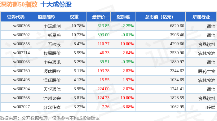 深防御50(399671)指数十大成份股详情如下: