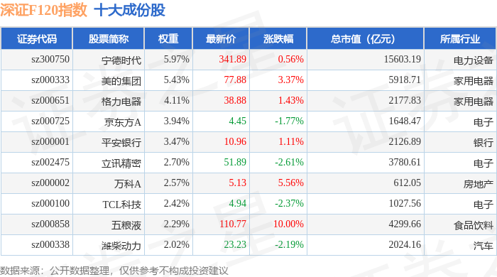 深证F120(399702)指数十大成份股详情如下: