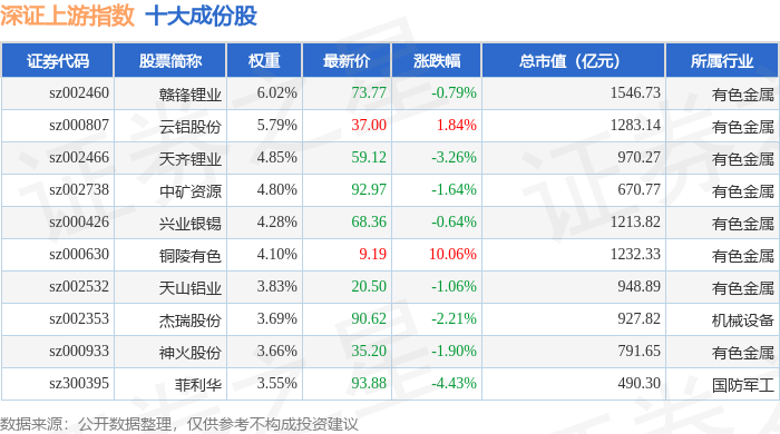 深证上游(399704)指数十大成份股详情如下: