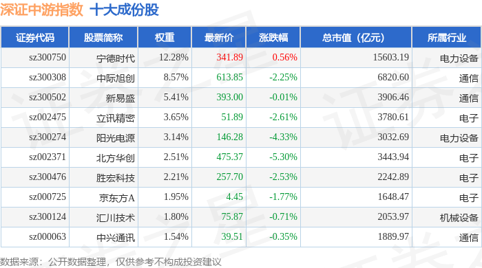 深证中游(399705)指数十大成份股详情如下: