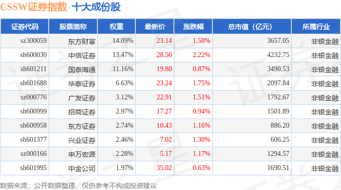 证券之星消息,1月29日,CSSW证券(399707)指数报收于6536.28点,涨1.28%,成交569.6亿元,换手率1.64%。当日该指数成份股中,上涨的有47家,华林证券以6.54%的涨幅领涨,下跌的有2家,华安证券以0.39%的跌幅领跌。