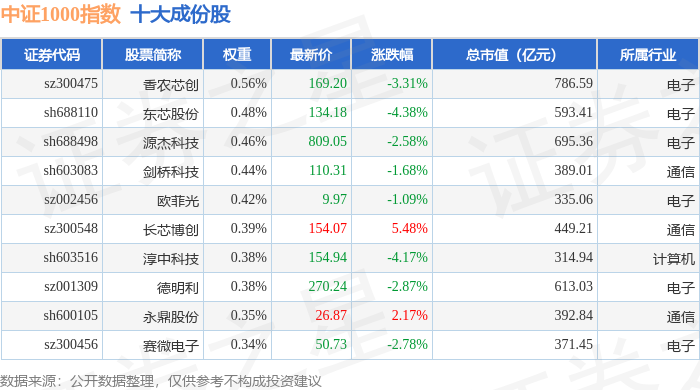 中证1000(399852)指数十大成份股详情如下: