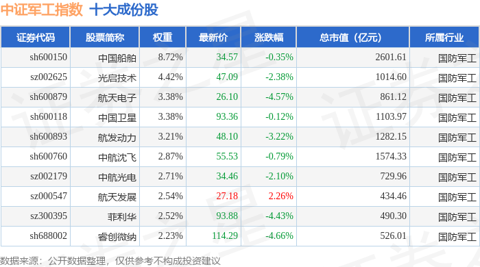 中证军工(399967)指数十大成份股详情如下: