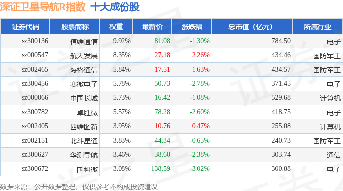 深证卫星导航R(470050)指数十大成份股详情如下: