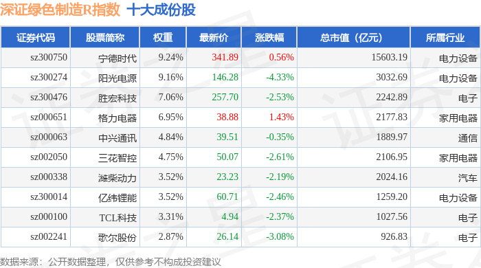 深证绿色制造R(470069)指数十大成份股详情如下:
