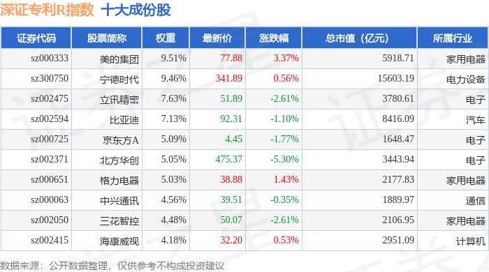 深证专利R(470067)指数十大成份股详情如下: