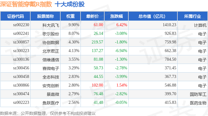 深证智能穿戴R(470074)指数十大成份股详情如下: