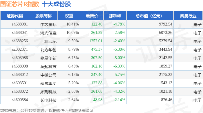 国证芯片R(480017)指数十大成份股详情如下: