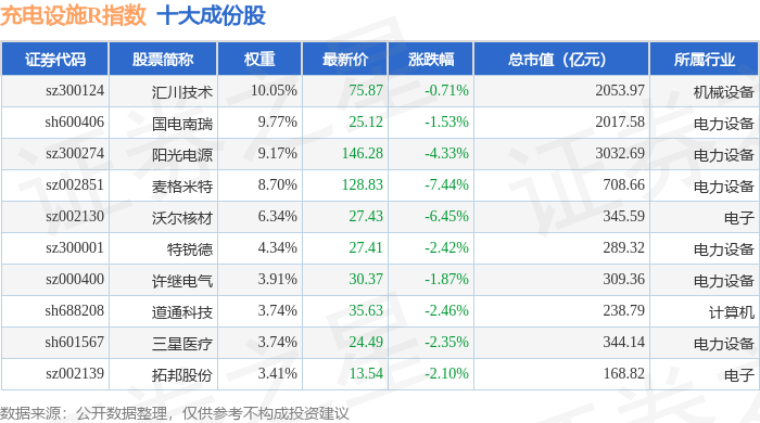 充电设施R(480077)指数十大成份股详情如下: