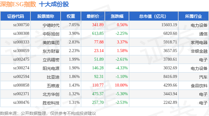 深指ESG(970026)指数十大成份股详情如下: