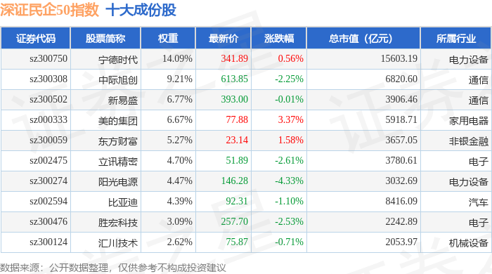深证民企50(970057)指数十大成份股详情如下: