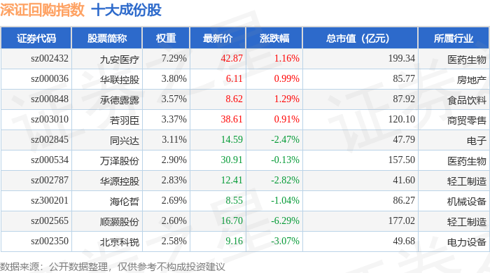 证券之星消息,1月29日,深证回购(970063)指数报收于3174.73点,跌0.9%,成交608.58亿元,换手率2.28%。当日该指数成份股中,上涨的有19家,美的集团以3.37%的涨幅领涨,下跌的有30家,顺灏股份以6.29%的跌幅领跌。