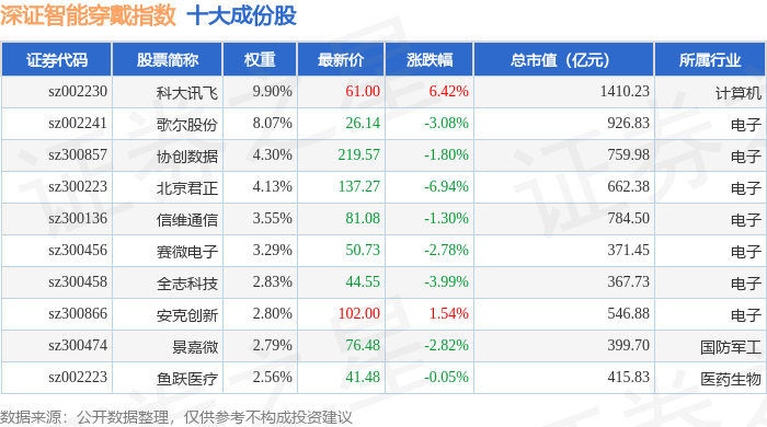 深证智能穿戴(970074)指数十大成份股详情如下: