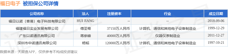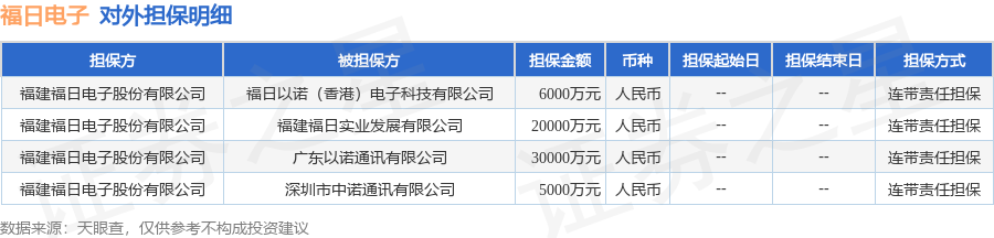 福日电子1月28日披露4笔对外担保,被担保公司4家。对外担保明细如下表: