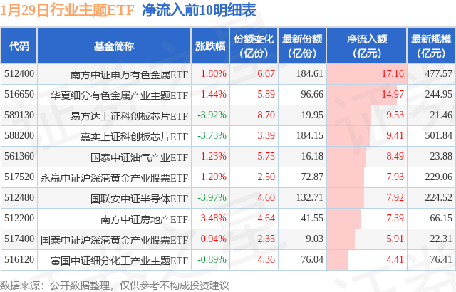 【ETF观察】1月29日行业主题ETF净流入131.78亿元