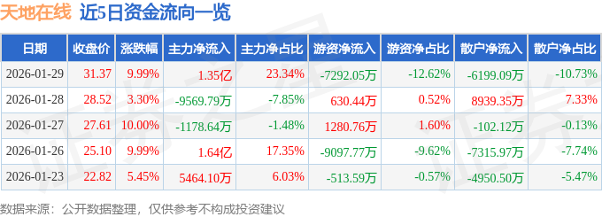 1月29日的资金流向数据方面,主力资金净流入1.35亿元,占总成交额23.34%,游资资金净流出7292.05万元,占总成交额12.62%,散户资金净流出6199.09万元,占总成交额10.73%。