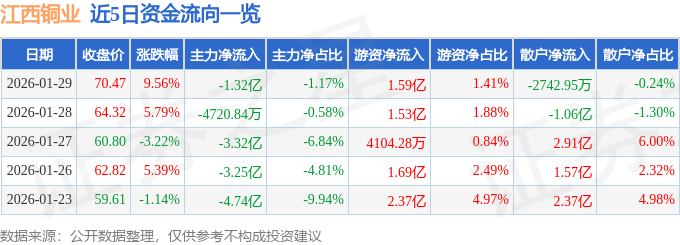 1月29日的资金流向数据方面,主力资金净流出1.32亿元,占总成交额1.17%,游资资金净流入1.59亿元,占总成交额1.41%,散户资金净流出2742.95万元,占总成交额0.24%。