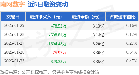 证券之星消息,1月29日,南网数字(301638)融资买入4442.0万元,融资偿还4520.51万元,融资净卖出78.52万元,融资余额3.13亿元。