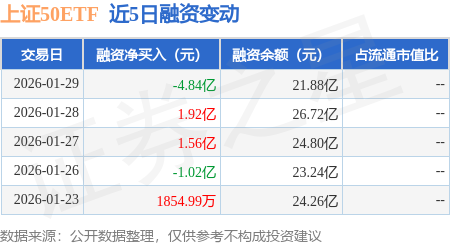 证券之星消息,1月29日,上证50ETF(510050)融资买入3.43亿元,融资偿还8.27亿元,融资净卖出4.84亿元,融资余额21.88亿元。