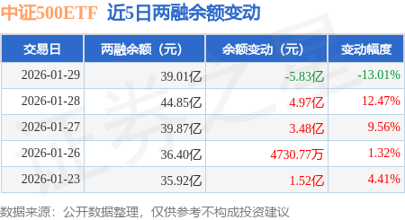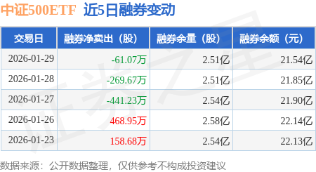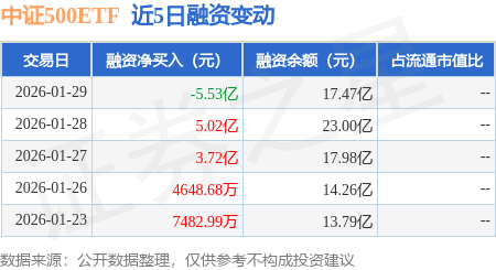 证券之星消息,1月29日,中证500ETF(510500)融资买入4.63亿元,融资偿还10.16亿元,融资净卖出5.53亿元,融资余额17.47亿元,近20个交易日中有13个交易日出现融资净买入。