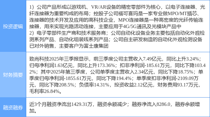 证券之星消息,致尚科技1月30日涨停收盘,收盘价198.37元。该股于11点27分涨停,1次打开涨停,截止收盘封单资金为2950.08万元,占其流通市值0.21%。