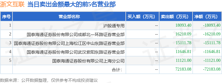 证券之星消息,沪深交易所2026年1月30日公布的交易公开信息显示,浙文互联(600986)因有价格涨跌幅限制的日换手率达到20%的前五只证券登上龙虎榜。此次是近5个交易日内第5次上榜。