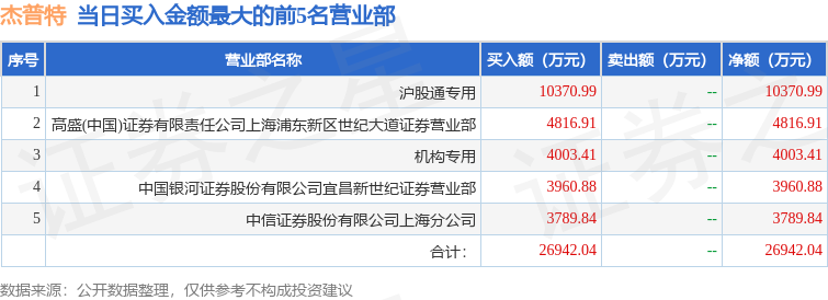 证券小知识:龙虎榜是交易所披露的竞价交易公开信息,现身龙虎榜的个股都是当日最为活跃的个股,是投资者日常重点关注的数据。交易所公布当日买入金额和卖出金额前五名的席位,其中一些席位代表特殊意义,如机构专用席位是指基金专用席位、券商自营专用席位、社保专用席位、券商理财专用席位、保险机构专用席位、保险机构租用席位、QFII专用席位等机构投资者买卖证券的专用通道和席位。深股通专用、沪股通专用为北向资金的交易席位。