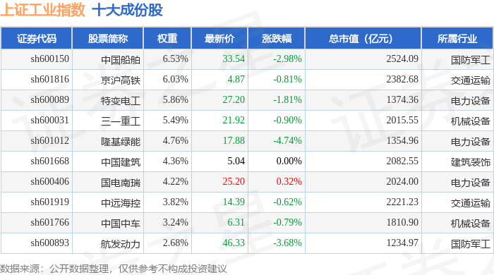 证券之星消息,1月30日,上证工业(000034)指数报收于2261.28点,跌1.58%,成交673.26亿元,换手率1.3%。当日该指数成份股中,上涨的有10家,招商轮船以2.99%的涨幅领涨,下跌的有37家,中信金属以8.4%的跌幅领跌。