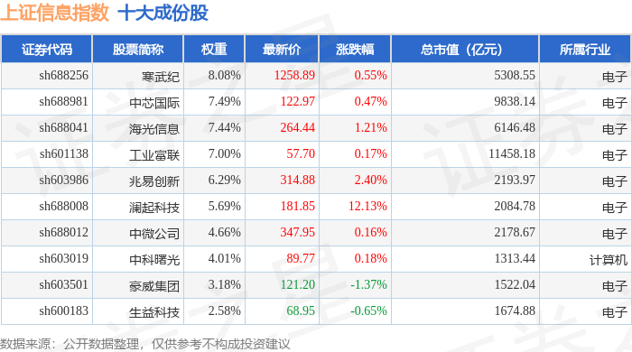 上证信息(000039)指数十大成份股详情如下: