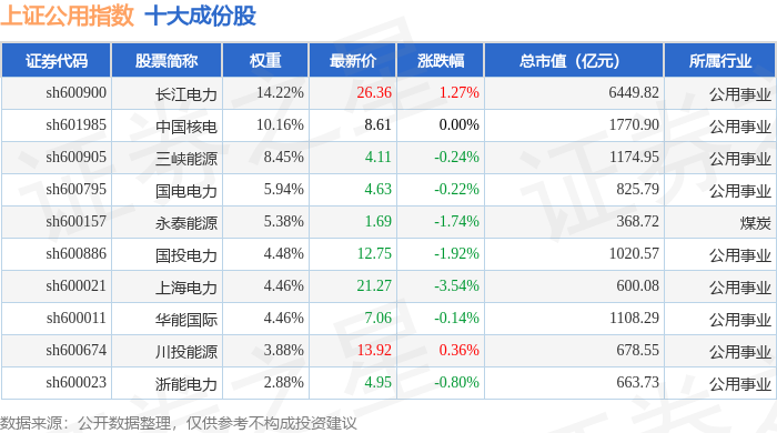 证券之星消息,1月30日,上证公用(000041)指数报收于2542.47点,跌0.34%,成交206.16亿元,换手率1.18%。当日该指数成份股中,上涨的有9家,涪陵电力以5.34%的涨幅领涨,下跌的有20家,九丰能源以4.86%的跌幅领跌。