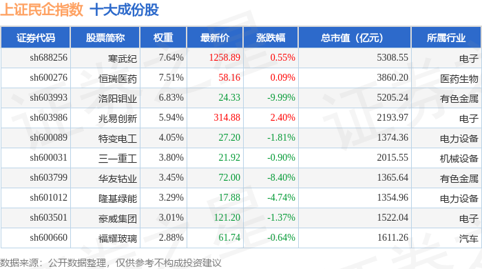 上证民企(000049)指数十大成份股详情如下: