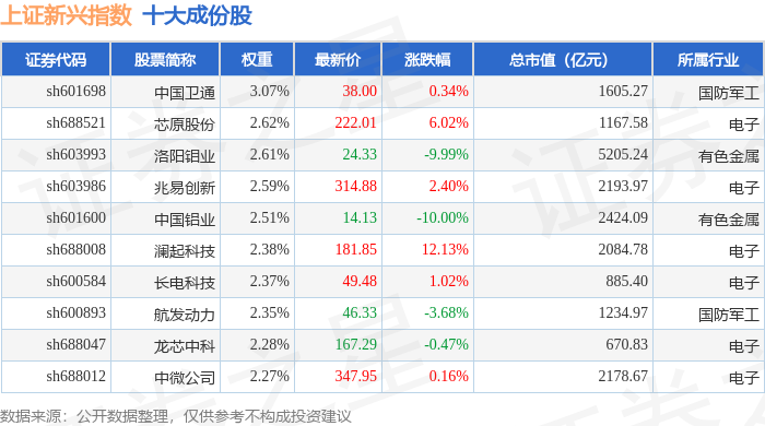 证券之星消息,1月30日,上证新兴(000067)指数报收于9569.17点,跌1.01%,成交1911.99亿元,换手率1.98%。当日该指数成份股中,上涨的有18家,澜起科技以12.13%的涨幅领涨,下跌的有31家,中国铝业以10.0%的跌幅领跌。