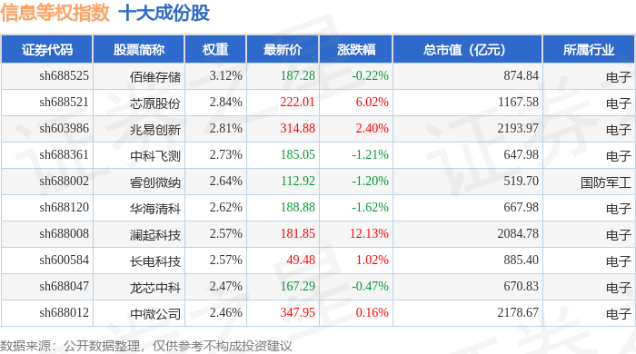 信息等权(000077)指数十大成份股详情如下: