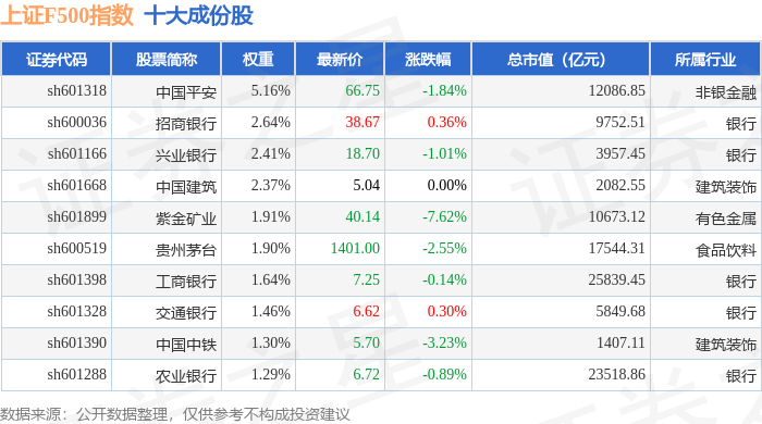 上证F500(000100)指数十大成份股详情如下: