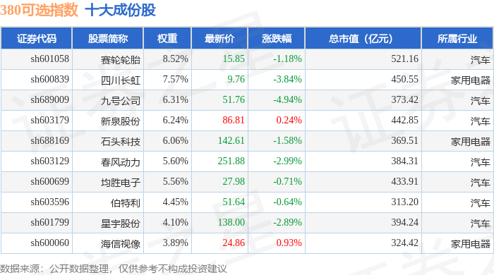 380可选(000107)指数十大成份股详情如下:
