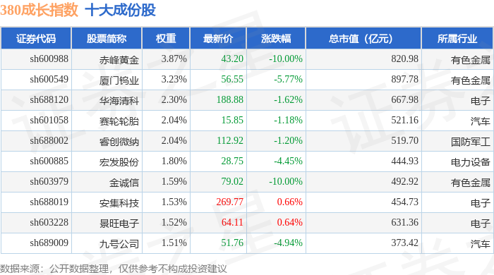 证券之星消息,1月30日,380成长(000117)指数报收于4683.24点,跌1.92%,成交816.5亿元,换手率1.95%。当日该指数成份股中,上涨的有26家,聚辰股份以7.08%的涨幅领涨,下跌的有92家,赤峰黄金以10.0%的跌幅领跌。