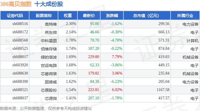 380高贝(000137)指数十大成份股详情如下: