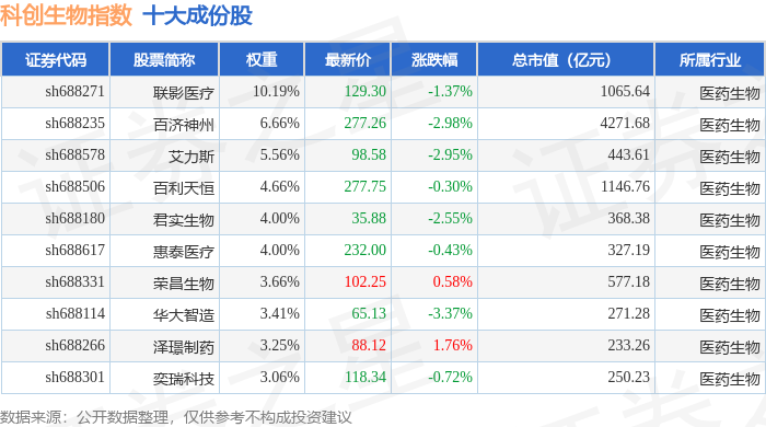 科创生物(000683)指数十大成份股详情如下: