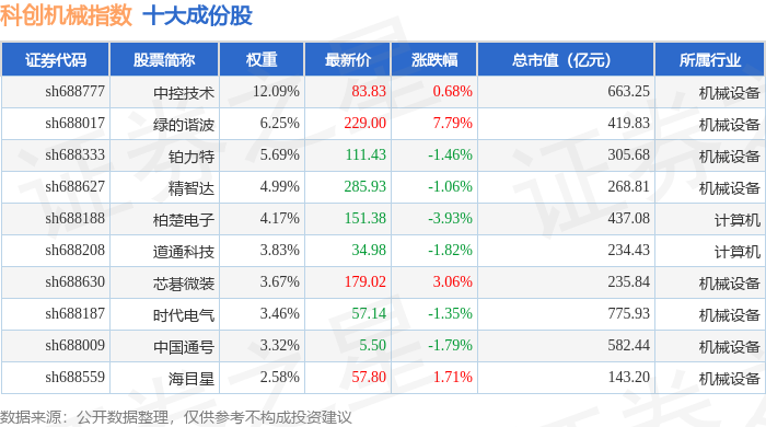 科创机械(000693)指数十大成份股详情如下: