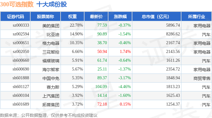 300可选(000911)指数十大成份股详情如下: