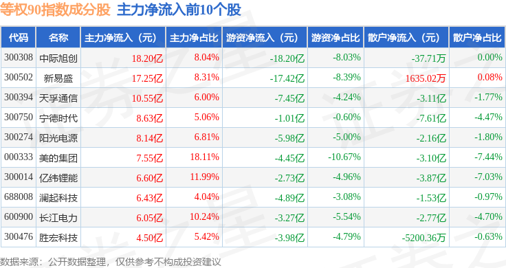 资金流向方面,等权90(000971)指数成份股当日主力资金净流出合计59.77亿元,游资资金净流出合计32.13亿元,散户资金净流入合计91.9亿元。成份股资金流向详情见下表: