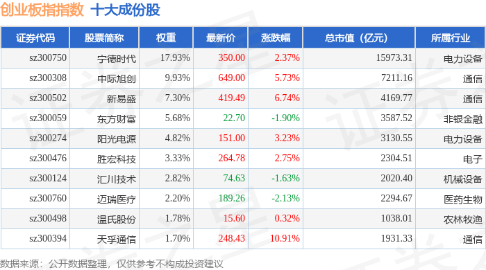 证券之星消息,1月30日,创业板指(399006)指数报收于3346.36点,涨1.27%,成交7309.64亿元,换手率4.98%。当日该指数成份股中,上涨的有36家,天孚通信以10.91%的涨幅领涨,下跌的有63家,新诺威以15.72%的跌幅领跌。