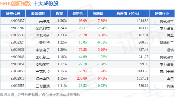 证券之星消息,1月30日,SME创新(399017)指数报收于5189.44点,跌0.63%,成交1389.89亿元,换手率3.15%。当日该指数成份股中,上涨的有30家,英维克以7.69%的涨幅领涨,下跌的有67家,横店东磁以6.27%的跌幅领跌。